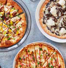 Barbecue Sauce, Cheese, Red Onions, Tomatoes Crunchy Bacon & Barbecue Chicken