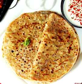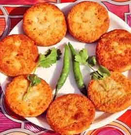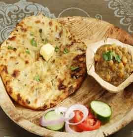Bread stuffed with potatoes & garbanzo beans served with fresh onions & cilantro