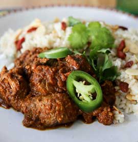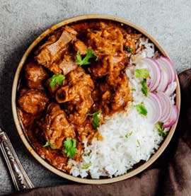 Tender pieces of chicken cooked with red onions, Bell peppers, Spices & Herbs (Gluten Free)