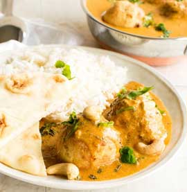 Fried balls of potato & paneer in a rich and creamy mild gravy made with sweet onions and tomatoes. This is for the malai kofta