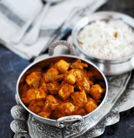 Cottage cheese (Paneer) cooked with onions & Garlic in a spicy curry sauce