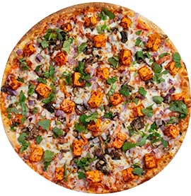 Curry Sauce, Cheese, Garlic, Ginger, Green Chili,Mushrooms, Red Onion,Black Olives, Tomatoes,Curry Paneer & Fresh Cilantro
