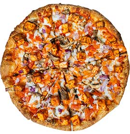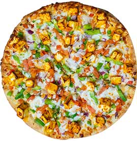 Red Sauce, Cheese,(Red Onion,Bell Peppers,Paneer Marinated in Spices), Salt & Fresh Cilantro