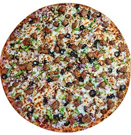 Red Sauce, Cheese, Pepperoni,Mushrooms, Red Onions, Green Pepper & Italian Sausage